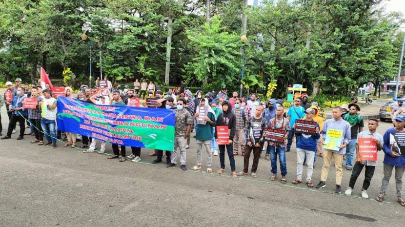 JAKARTA — Forum Solidaritas Mahasiswa dan Pemuda Peduli Pembangunan di Tanah Papua menggelar aksi damai mendukung pengesahan daerah otonomi baru (DOB) di Provinsi Papua. Aksi yang berlangsung di dua tempat, yaitu Patung Kuda dan Gedung DPR/MPR, Jakarta Pusat, itu diikuti sekitar 200 orang.