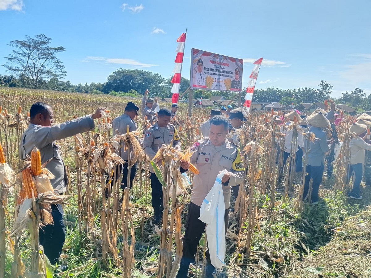 Halmahera Utara – Polres Halmahera Utara (Halut) bersama Dinas Pertanian Kabupaten Halut sukses melaksanakan kegiatan Panen Raya Jagung di Desa Kali Pitu, Kecamatan Tobelo Tengah, Senin (12/5/2025). Kegiatan ini merupakan wujud dukungan terhadap program ketahanan pangan ASTA CITA Pemerintah Republik Indonesia di bawah kepemimpinan Presiden Prabowo, sekaligus mengawal arahan penggunaan 20% dana desa untuk sektor pangan.