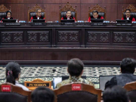 Para pemohon menilai, ketentuan tersebut bertentangan dengan konstitusi karena hak pemogokan telah diatur dalam UUD dan frasa “konflik komunal” bersifat multitafsir sebab tidak ada batasan hukum yang jelas.